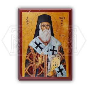 4. Άγιος Νεκτάριος - Εικόνα ξύλινη απλή 20X26